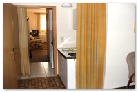 Sat-TV, Kochnische, Kühlschrank, Bad und Dusche.